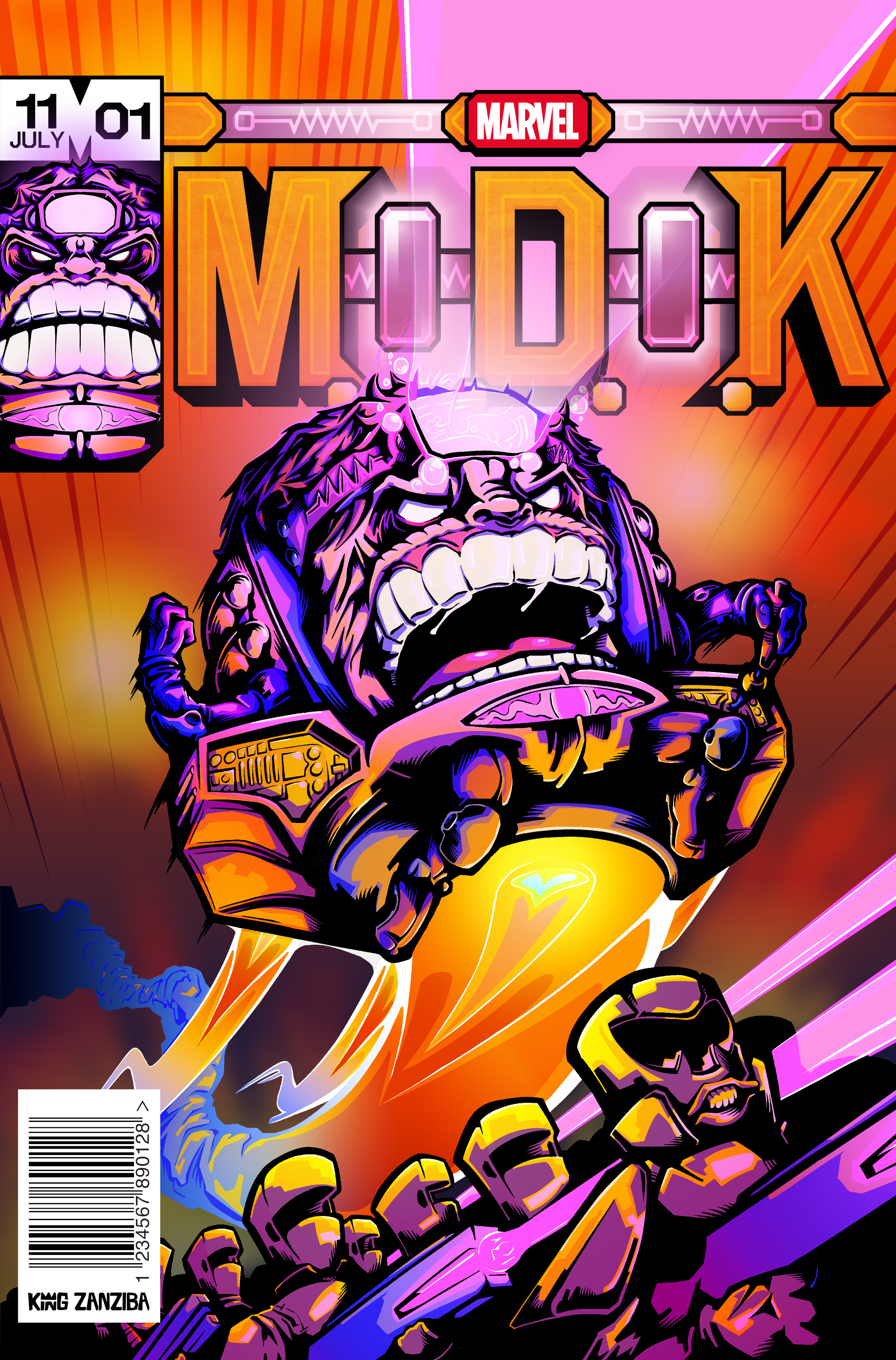 A comic cover that conveys the energy of the character with references to the history of comics to grab the attention of long time fans.