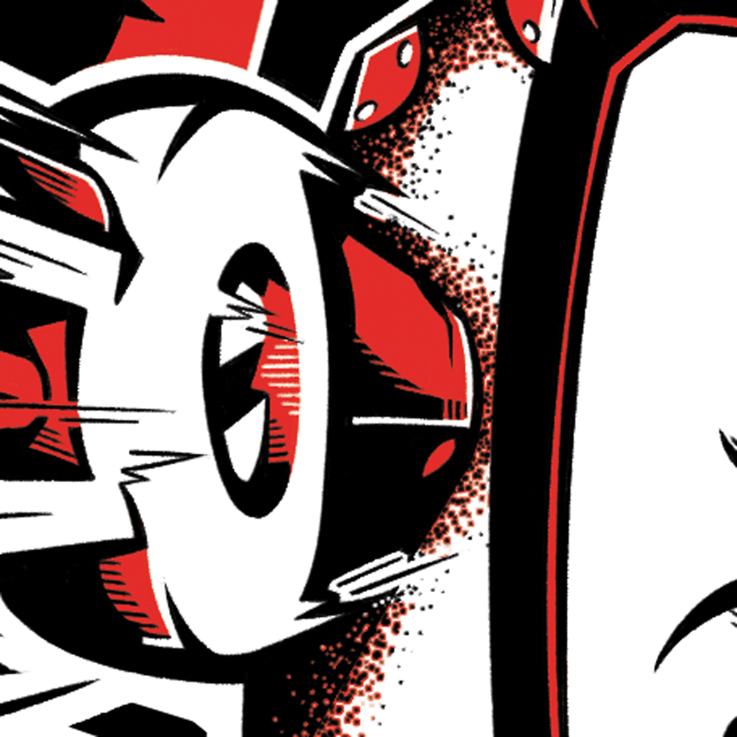 A detailed and fun poster with explosive text that matches the energy depicted in the illustration, with a minimal use of colour that would be perfect for screen printing.